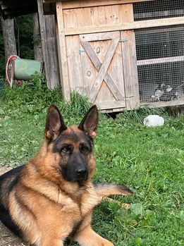 Litter due November 4, 2025. Ready for homes around December 30, 2025. This is a very special breeding between two exceptional, imported German Shepherds, both born and titled in Germany. Willy vom Laabergau and Vinja vom Fichtenschlag each have excellent hips and elbows (A-stamped in Germany), and their conformation is superb, rated “Excellent” (V-rated) by German judges. In addition to their outstanding structure and health, both dogs have earned titles that reflect their intelligence, trainability, and balanced drives. Willy holds an IGP3 title, showcasing advanced obedience, tracking, and protection skills. Vinja is a female with a clear-headed, confident demeanor and a strong working temperament. She holds a ZAP (obedience, tracking, and protection) title from Germany. She has also earned multiple obedience titles through the AKC with our young daughter as her handler. Both dogs are richly pigmented with striking black and red traditional saddle pattern and expressive features.